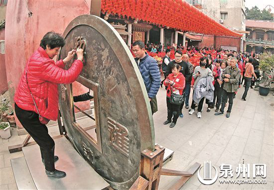 市区元妙观灯笼高挂(陈小阳 摄) 市区元妙观“钻钱眼”(陈小阳 摄)市区元妙观