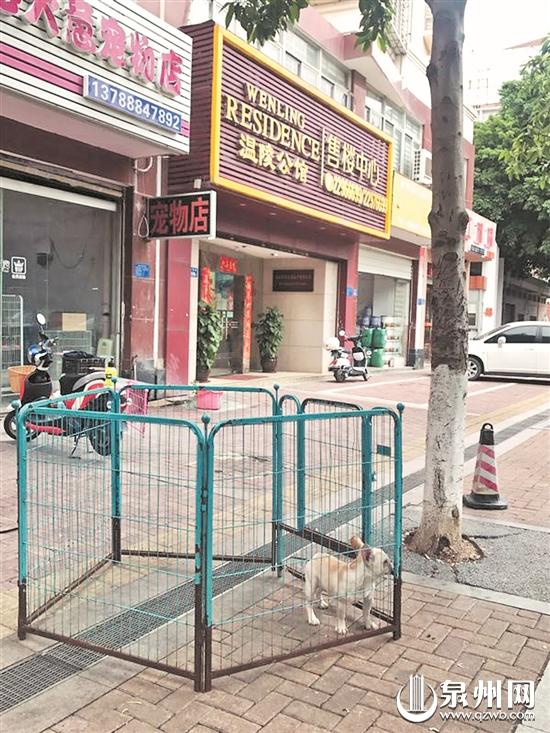 宠物店工作人员在非机动车道上遛狗 一家宠物店占道遛狗10日下午,在刺桐北路的一家犬类宠物店门口,店家在非机动车道上围了个围栏,让狗在里面奔跑,未在其身上绑绳子,不少市民看到纷纷避开。在这个围栏附近,记者看到了不少狗大便。“把小狗放在外面,事后也不清理粪便,太不卫生了。”骑车经过的陈女士说。