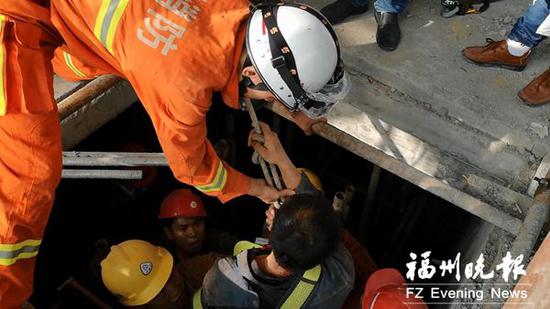 福州一工人坠入10米深电梯井 消防员成功将其救出
