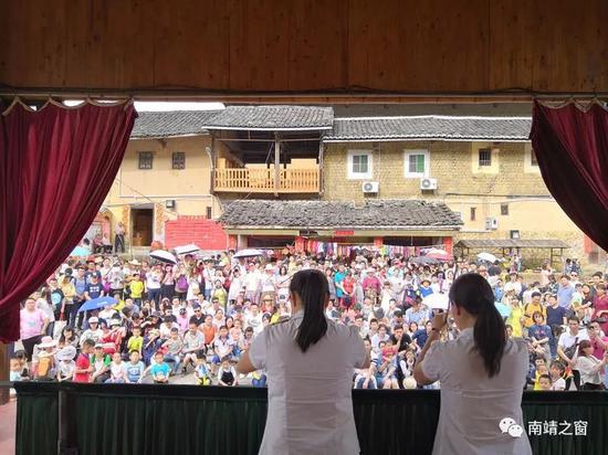 在茂密的大榕树下,来自四川的刘女士则被本地芗剧团的表演所吸引,陶醉其中,用手机记录下当地的风土人情。