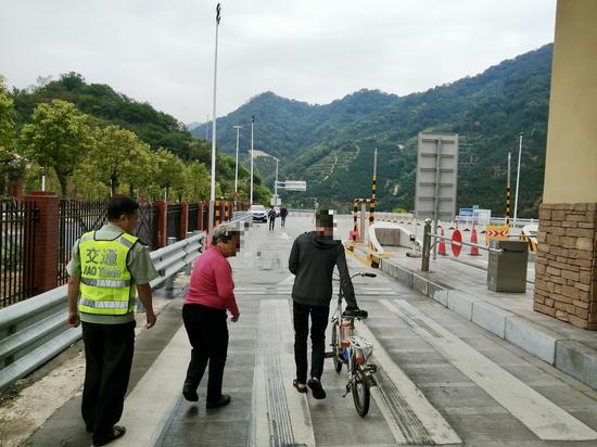 日前,正值漳州平和霞寨所一班班长吴昊当班,正当他在入口车道执勤时发现离入口车道不远处有一名男性青年骑着自行车朝着入口车道驶来,小吴立即上前劝阻,发现该青年目光呆滞,似乎听不进小吴的劝阻,无法与其正常交流,且表现出激动情绪,小吴判断该青年可能存在智力缺陷问题。
