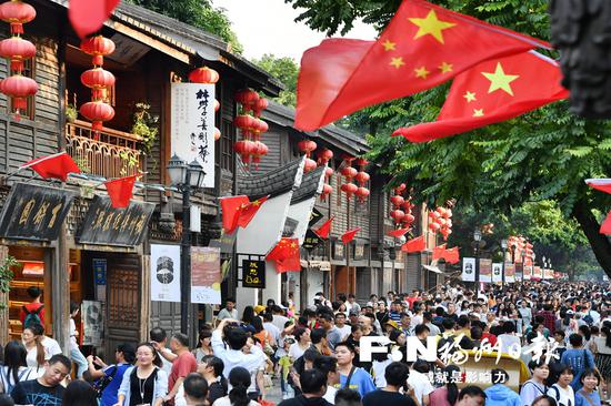 1日,南后街人声鼎沸,热闹非凡,市民和海内外游客在这里欢度国庆长假。