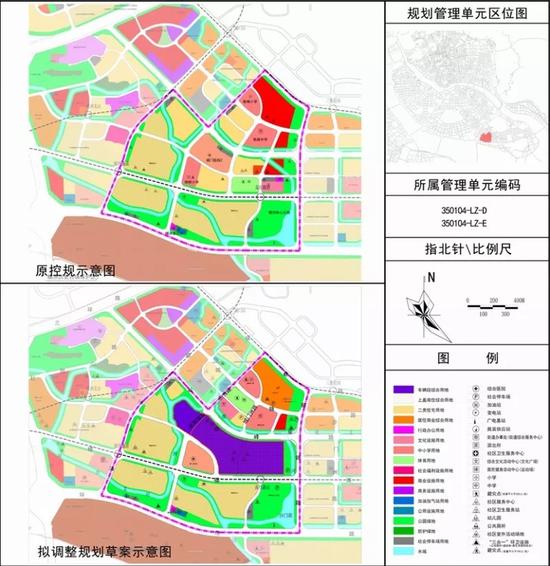 调整后方案:用地性质为公共交通场站用地及上盖开发综合用地[公共交通场站用地(S41)、居住(R21)、商业(B1)、商务(B2)、幼儿园(R22)]。