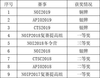 从初一开始一直在福州三中学习信息学,喜欢编程、阅读和运动。初三获全国青少年信息学奥林匹克联赛提高组一等奖。2019年获得清华大学大学生程序设计竞赛暨高校邀请赛三等奖。