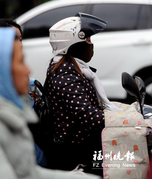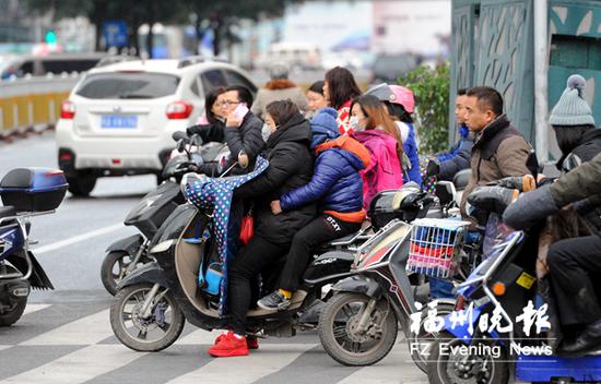昨日福州寒潮来袭,放学坐电动车回家的紧紧地抱着妈妈取暖。
