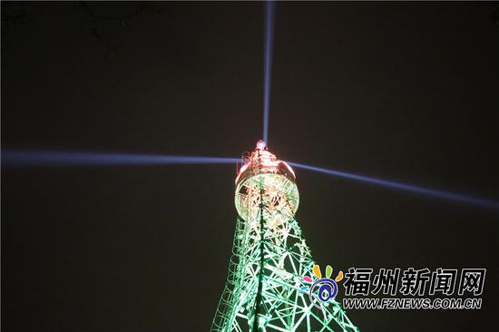 冬夜里,福州金鸡山公园在灯光装扮之下,绽放出另一种美。