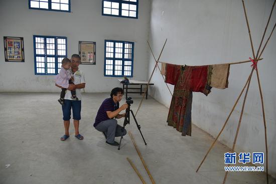 5 / 88月24日,闽江学院服装与艺术工程学院的老师在拍摄戏服上的纹饰。待存入电脑后,这些纹饰将被提取出来,后期可为文创产品研发提供创意和参考。新华网 程立葳 摄