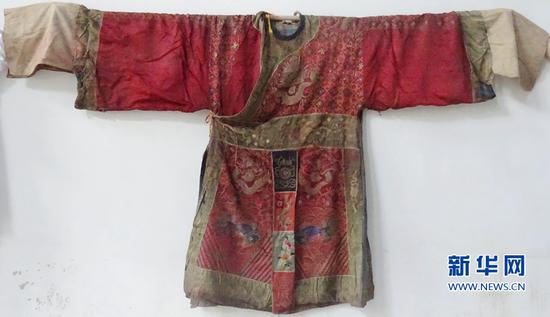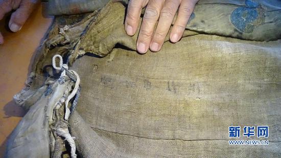 8 / 8一件古戏服的衬里写着“道光甲午年”字样。新华网发 许云 摄