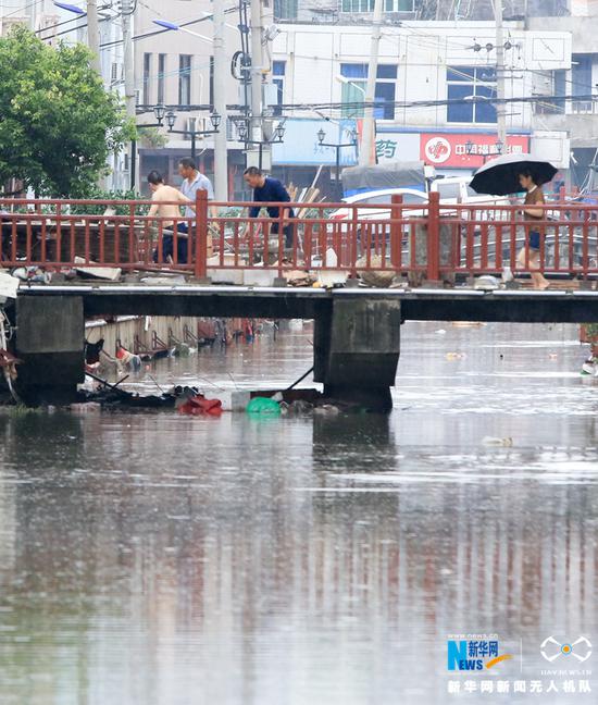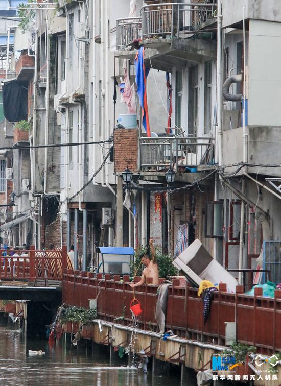 12日,几位居民将垃圾拖出家门,等待运走。新华网肖和勇 摄 12日,一位居民正从河道取水清洗家园。新华网 肖和勇 摄