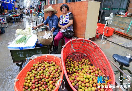 生活,仍要继续。12日,两名老人在牙城镇镇区卖蔬菜和水果。老人说,新鲜的李子,再不卖出去就会烂了。他们希望,生活快快恢复正常,有更多的人光顾他们的生意。新华网肖和勇 摄