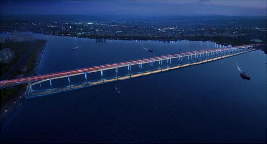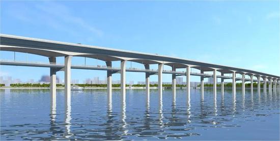 效果图该项目包含的溪东大桥(长1.38公里),跨越南港海域,连接大嶝岛和莲河两岸,是全省首座、厦门唯一采用上下双层设置“车道和非机动车道”形式的跨海大桥,两层桥面共用桥墩,实现机动车和非机动车分层通行。