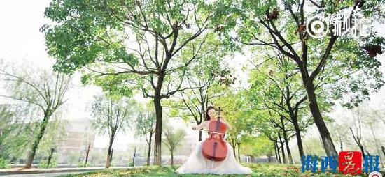 集美大学学生拍艺术照宣传母校。