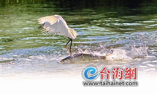厦门筼筜湖上演“鱼口夺食” 大鱼捕食白鹭在后(图)