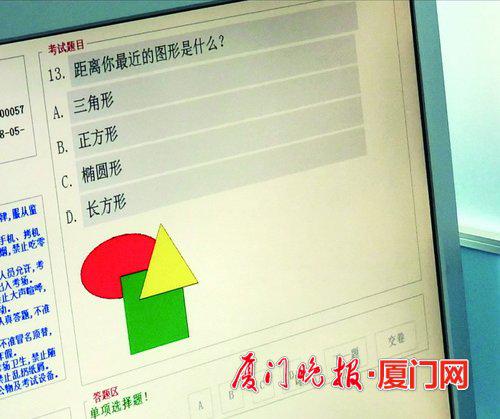 昨天下午4点左右,在位于后溪的厦门市交警支队车管所,老严顺利通过记忆力、判断力、反应力测试,得90分。拿着测试通过表,他高兴地说:“等拿到证后,就能想去哪就去哪了。”在回家的路上,他把这个好消息第一时间告诉了女儿,女儿也非常开心。