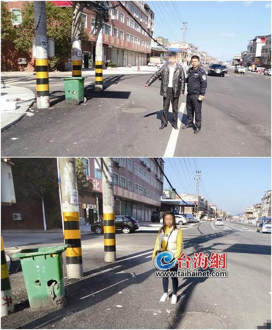 ▲两名肇事逃逸嫌疑人指认现场(上图为曾某,下图为张某)