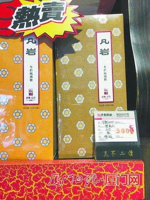 在某品牌茶叶海沧直营店内,较低价格的“牛肉”每斤售价为1万元,最高的是10万元1斤。店长说,当下武夷岩茶中最火的就是“牛肉”,几款不同 价格的“牛肉”,区别在于制作工艺的差异,每斤万元以上的“牛肉”,冲泡后品鉴起来会感觉它的“岩韵”非常足,好的岩茶很耐泡,冲泡20遍以上味道还很浓 郁。“店里暂时没有10万元1斤的‘牛肉’存货,如果想要,可以马上调货。”店长说。