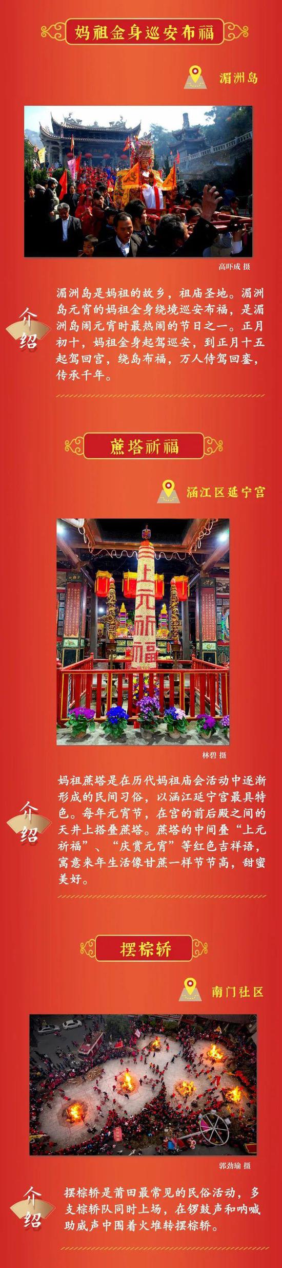 近年来,莆田正在以元宵习俗为契机,打好“文化牌”和“旅游牌”。“我们莆田的元宵节非常有特色,这几年,莆田更加注重挖掘传统文化、非遗文化,不断打造莆田元宵的文化品牌。”莆田市副市长陈惠黔说。