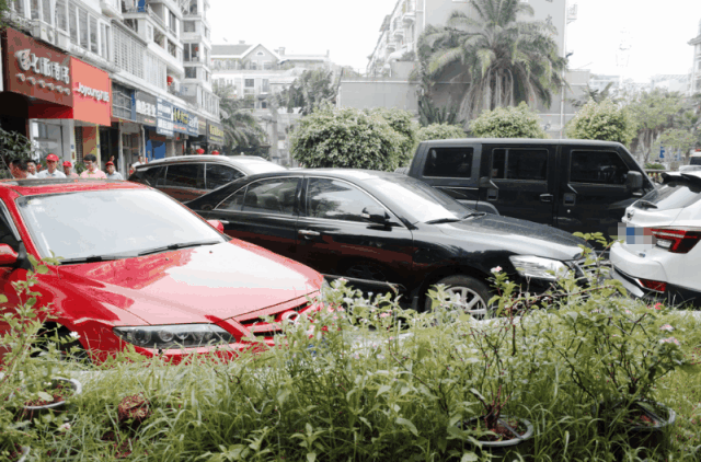 该区域车辆停放秩序较为混乱、绿化失管、瓷砖及道路破损。