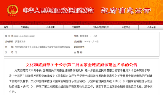 2020年11月18日,文化和旅游部发布《关于公示第二批国家全域旅游示范区名单的公告》,共有97家创建单位入选,集美区成功入选,榜上有名。