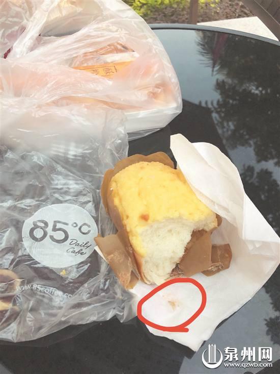 泉州网10月23日讯 (记者苏勇 文/图)“85度C面包吃到嘴里,感觉有异物,吐出来竟然是指甲!”昨日下午,市民吴女士拨打本社24小时热线96339反映了她的遭遇。她到面包店反映,店长未承认指甲来自该店的面包中,只答应给她退款。因协商未果,她向相关部门进行了投诉。
