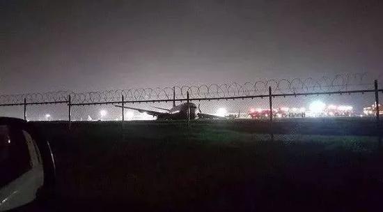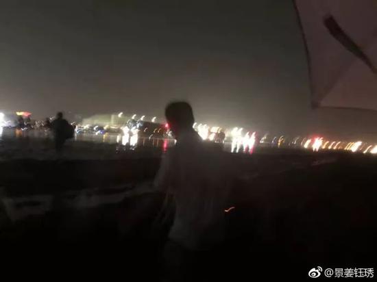 甚至有网友@大甜软糖 拍到飞机在接地高速滑行的