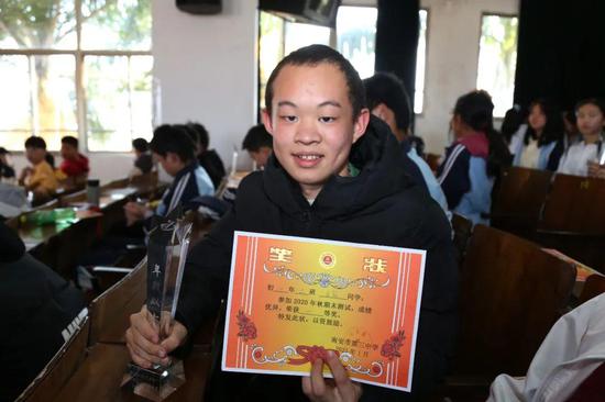 记者了解到,王宸同学本次考试以803.5分的高分位居片区第一名,平常他的学习成绩在年段一直是名列前茅。除了他,还有80多名同学也依次上台,领到了属于自己的奖杯和奖状。