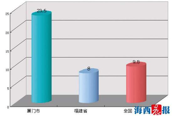 厦门市每万人口发明专利拥有量远超全国平均水平。