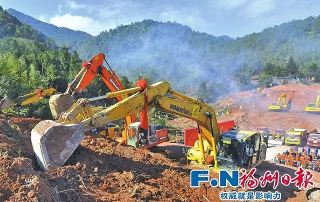 2016年12月18日,全市各县(市)区、市直有关部门自行组织的76项重大项目集中开工。图为福州莆炎、长福高速公路开工仪式现场,挖掘机在开挖土方。