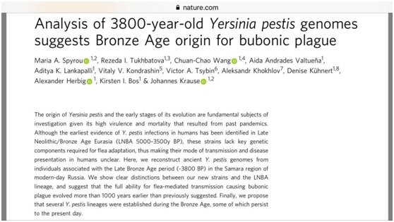 古老的鼠疫杆菌为微生物的传播提供了线索,因而成为大家感兴趣的研究对象。去年11月,Spyrou及其同事曾在《Current Biology》上发表论文,对新石器时代或青铜器时代的六个分离株进行分析,以探索瘟疫如何传入欧洲。