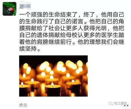 遗体捐献,在他生病之时就一直存在这个念头,11月,在他弥留之际,他终于说服家人,毅然决定把自己的眼角膜及遗体捐献出来,用于医学研究。