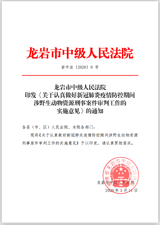 根据上级法院疫情防控的相关文件精神,制定出台了《关于认真做好新冠肺炎疫情防控期间涉野生动物资源刑事案件审判工作的实施意见》,从充分发挥司法审判职能,维护龙岩市野生动物资源和生物多样性的角度,依法从严从快打击涉疫生态违法犯罪行为,实现司法裁判“三个效果”的有机统一。▲疫情期间,依法从严从快审理环境污染案件