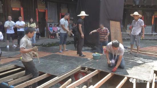 记者来到裕昌楼时看到,工人们正在搭建舞台、布置灯光,所有的前期筹备工作都在有条不紊地进行着。