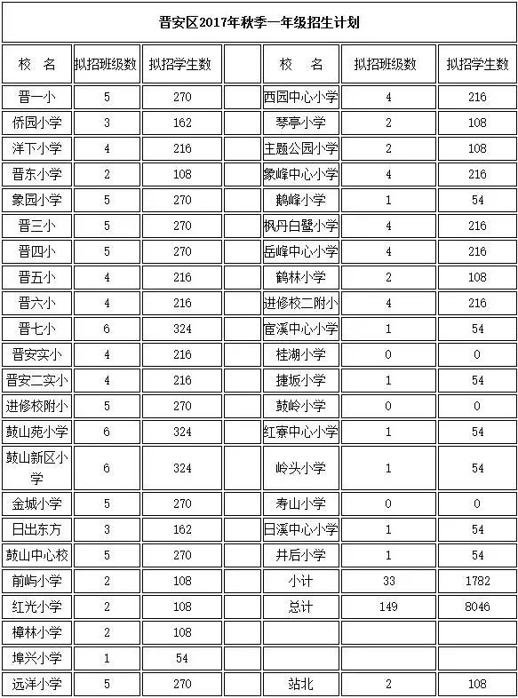 今天,福州晋安区教育局公布了2017年晋安小学招生划片范围及每个小学招收人数。