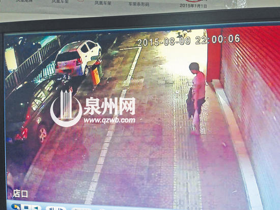 旁边的凤凰自行车行的监控记录了事发经过。记者从监控里看到,周日22时0分2秒,谢女士身着白衣黑裤,手提一个塑料袋并拿着一把雨伞走在前面,她的儿子紧跟在身后。