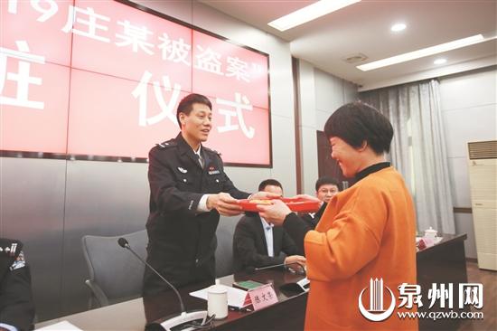 泉州网3月22日讯(记者 吴水保 通讯员 陈耀宗 庄凌龙 文/图)价值约10万元的钻石、金饰等财物被盗,嫌犯从进入失主家中到离开仅用了7分钟,晋江市公安局启动“三即十快”(有警即处、有案即破、有损即挽)新机制,多警种配合,5个小时多就破获案件。昨日,该局召开新闻发布会,现场发还追回的赃款赃物。