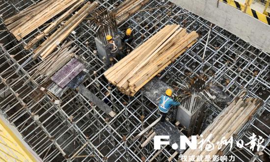 6日,地铁6号线潘墩站主体车站施工现场,机器轰鸣,作业车辆往来穿梭,工人们正忙着捆扎钢筋、浇筑水泥。