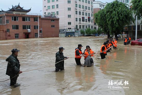昨日上午,永泰县3小时降雨量突破300毫米,城区路面积水严重,大樟溪水位超出路面1米,清凉溪水位超出路面2米。