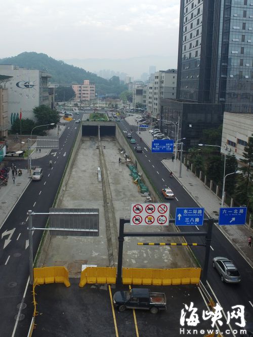 昨日,海都记者在省图书馆门前看到,湖东路上的隧道入口已建成,一旁的绿化、道路均已恢复。但由于隧道未完工,入口处只能用围挡封闭。