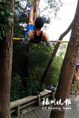 网友“小野_Yeah”告诉记者,视频中的老人每周有两三次会到鼓山健身,当天她经过时,刚好看到老人正在向一名年轻人示范健身动作,因此得以录下一段较为完整的健身视频。