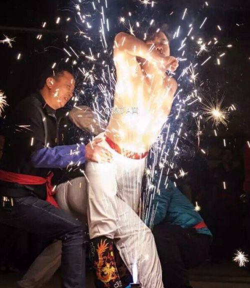昨天是正月十九,莆田有个古老的习俗,僮身会脱光上身,登上专门的平台,替菩萨疯狂吃那个礼花喷出来的火焰,任由火星喷射在身上驱妖除邪!现场非常番热闹,广场之上人山人海,水泄不通,火焰喷射,星光闪耀!(来源:仙游那些事儿)