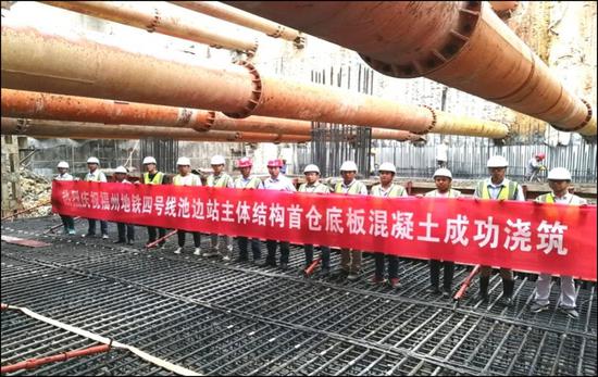 26日,随着最后一车混凝土浇筑完毕,地铁4号线池边站主体结构实现全部封顶。
