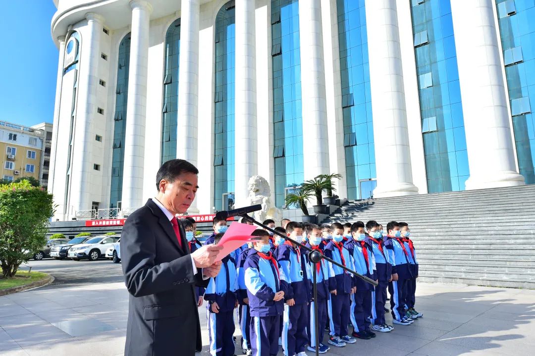 在第八个“国家宪法日”到来之际,12月3日,福建省高级人民法院隆重举行国家宪法日主题宣传活动,60余名新晋职人员及新进院机关干警参加宪法宣誓。福建高院党组成员、副院长黄石勇担任领誓人;党组成员、政治部主任王汉宏主持宣誓活动。省人大代表、政协委员、人民法院监督员以及福州西峰小学师生代表、媒体记者等应邀观礼。