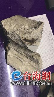 细心的业主收集了多块混凝土,导报记者前往国贸海景采访时,业主们搬出了3块混凝土分析:“掉落的飘檐与单元楼的接口上,看见的是两根10号铁线和玻璃纤维作为固定。”业主陈先生非常担忧。