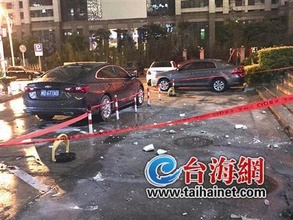 ▲不少车辆被砸中,现场拉起警戒线