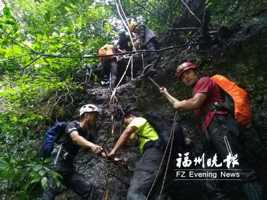 山地救援队前晚10时43分接警后,立即启动救援程序,分散在福州各地的20多名志愿者紧急待命。