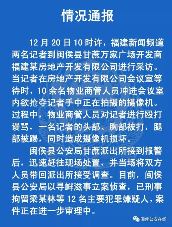 福建新闻频道两记者商业广场采访遭殴打 12人被刑拘